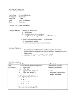 Rancangan Pengajaran Harian Matematik Ct Hapsyah