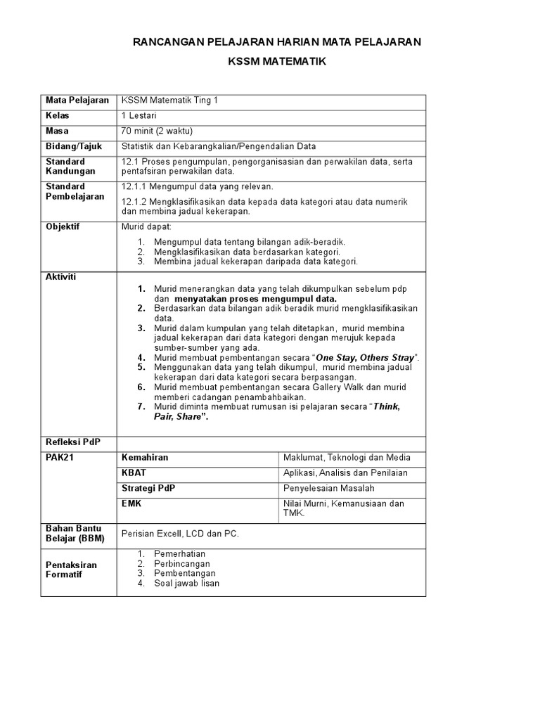 Rancangan Pengajaran Harian Matematik Tingkatan 4 Keywords. Rph bi sejarah pendidikan moral rph pendidikan sivik. Iii Mengira min daripada jadual kekerapan data terkumpul.